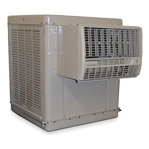 Window Evaporative Cooler, With Drive, Air Flow 4500 cfm, Cooling Capacity 1000 to 1400 sq. ft.Drive Type Belt, Speed 2, Motor HP 1/3, Voltage 115, 7.4 Amps, Discharge Front, Width 34-1/8 In., Depth 34 In., Height 34-1/2 In., Grille Width 21-3/4 In., Grille Height 14-7/8 In.Media Cool Pad, Pad Thickness 2 In., Pump Voltage 115, Power Cord Length 8 ft.Water Capacity 12.5 gal., Fill Type Hose or Manual Fill, Operating Weight 246 lb., Material Steel, Polyester Powder Coated Finish, Color Cool Sand Essick AirWindowRust-resistant, rugged, bolted design for long service. All units include evaporative pad, housing legs, and chain kits for wall-mount applications. 2YAD5, 2YAD6, and 2YAD7 convert from horizontal to vertical position for slider window applications.Easy to mount with no duct work, sheet metal cutting, or grille assembly. 120V.UL Listed.Assembled Evaporative Coolers