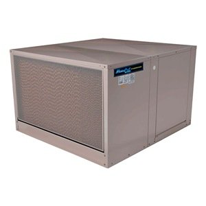 Assembled Evaporative CoolersEvaporative Cooler, Single Inlet Ducted, CFM 5000, Cooling Capacity (Sq.-Ft.) 1800, Propeller Dia. (In.) 16, Belt Drive, 2 Speed, Motor HP 3/4, Voltage 115, Amps 14.9, Down Discharge, Height (In.) 28, Width (In.) 42, Depth (In.) 49, Duct Opening Length (In.) 17-3/4, Duct Opening Width (In.) 17-3/4, Media Celdek Rigid Media, Pad Thickness (In.) 12, Pump Voltage 115, Water Connection 1/4 In. Compression Fitting, Water Capacity (Gal.) 7, Operating Weight (Lbs.) 263, Powder Coat Finish