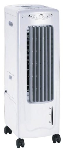 This Evaporative Air Cooler, Humidifier, and Fan is versatile, lightweight and economical. The Cooler easily rolls from room to room for use anywhere in your house or office. This Air Cooler shoots a stream of air with oscillating louvers, to evenly distribute refreshing cool air. Can also be used as a fan or humidifier if temperature is not an issue. - plus get the air cleaning benefits of the ionic air purifier. The remote control allows you to easily change settings.The Air Cooler works by endothermic reaction (a reaction that consumes heat), so this evaporative Air Cooler sucks air through a wick saturated with water. As the air flows through the wick, some of the water evaporates into the air, consuming the heat that was in the air. An air stream is then blown out the front of the unit and is considerably cooler than the current room temperature! This is not an air conditioner and therefore uses much less energy. Note: This unit is best used in dry climates or open spaces. Leave window/door open when temperature or humidity rises in the room. Add as much ice as possible and set unit next to you for best effect.Features and Functions- With remote control- Computer controlled airflows- Oxygen bar with negative ions- Whisper quiet motor- Water curtain cyclic system for effective cooling- Auto swing louvers- 10L water tank capacity- Three air speeds: H / M / L- Timer: from 0.5 ~ 7.5 hours setting- ETLSpecifications Input voltage 120V / 60Hz Power consumption 60 W Air flow 500m3/hour Water consumption 0.5 ~ 0.6 liters per hour Ion density 2,800,800 ~ 3,000,000/CM3 Dimension (L x W x H) in. 12 x 9.45 x 28.35 Net weight 17 lbs