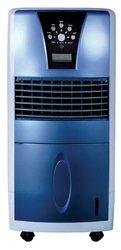 This Evaporative Air Cooler, Humidifier, Air Filtration and Fan with Ionizer is versatile and an economical way to cool and humidify the surrounding air. Designed with micro-computer control system, this unit can lower surrounding temperature and humidify the air through the principal of water evaporation. The Cooler easily rolls from room to room with lockable casters. This Air Cooler shoots a stream of air with oscillating louvers, to evenly distribute refreshing cool air. Can also be used as a fan or humidifier if temperature is not an issue. The remote control allows you to easily change settings.The Air Cooler works by endothermic reaction (a reaction that consumes heat), so this evaporative Air Cooler sucks air through a wick saturated with water. As the air flows through the wick, some of the water evaporates into the air, consuming the heat that was in the air. An air stream is then blown out the front of the unit and is considerably cooler than the current room temperature! This is not an air conditioner and therefore uses much less energy. Note: The unit works well in dry climates; not very effective in areas with high humidity as the unit utilizes water to cool. Features and FunctionsliComputer-controlled system with LED panelliFan, Cool, Humidifier, Air Filtration and IonizerliDouble-layered, filtration mesh water curtainliRemote controlliWashable filterliThree air speeds: H / M / LliTimer: from 0.5 ~ 7.5 hours settingliLocking castersliETLSpecifications Input voltage 120V / 60Hz Power consumption 60 W Air flow 500m3/hour Water consumption 0.5 ~ 0.6L/Hr Fan speeds 7.4 m/s Ion density 2,800,800 ~ 3,000,000/CM3 Dimension (W x D x H) in. 14.5 x 11.5 x 31.75 in. Net weight 20 lbs