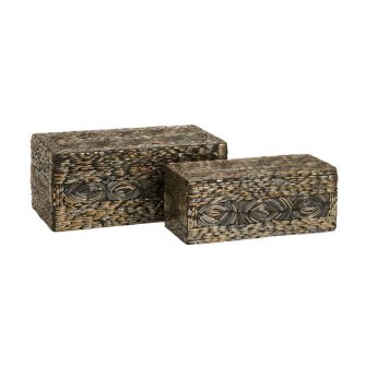 IMAX Omiska Rectangle Boxes Glass Kikar Wood Resin Unique Natural Woven Design