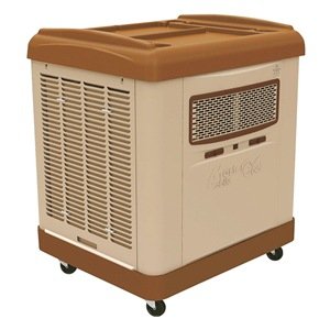 Portable Evaporative Cooler, With Drive, Air Flow 4000 cfm, Cooling Capacity 1200 sq. ft.Drive Type Belt, Speed 2, Motor HP 1/5, Voltage 115, 10.7 Amps, Discharge Front, Width 35-3/16 In., Depth 29-19/32 In., Height 41-3/8 In., Grille Width 19-1/4 In., Grille Height 5-7/8 In.Media Cellulose, Pad Thickness 2 In., Pump Voltage 115, Power Cord Length 8 ft.Water Capacity 11 gal., Fill Type Hose, Operating Weight 242 lb., Material Steel, Polyester Powder Coated Finish, Color Cool Sand Portable Evaporative CoolersHumidify, filter, freshen, and circulate air throughout the year.MasterCool Powder-coated steel cabinets are weather resistant for outdoor use. 115V. With hose connection for continuous use, 2-speed motor, high-efficiency rigid media, rubberized work tray top, and 4 casters. 6TEX3 and 6TEX2 have remote control.